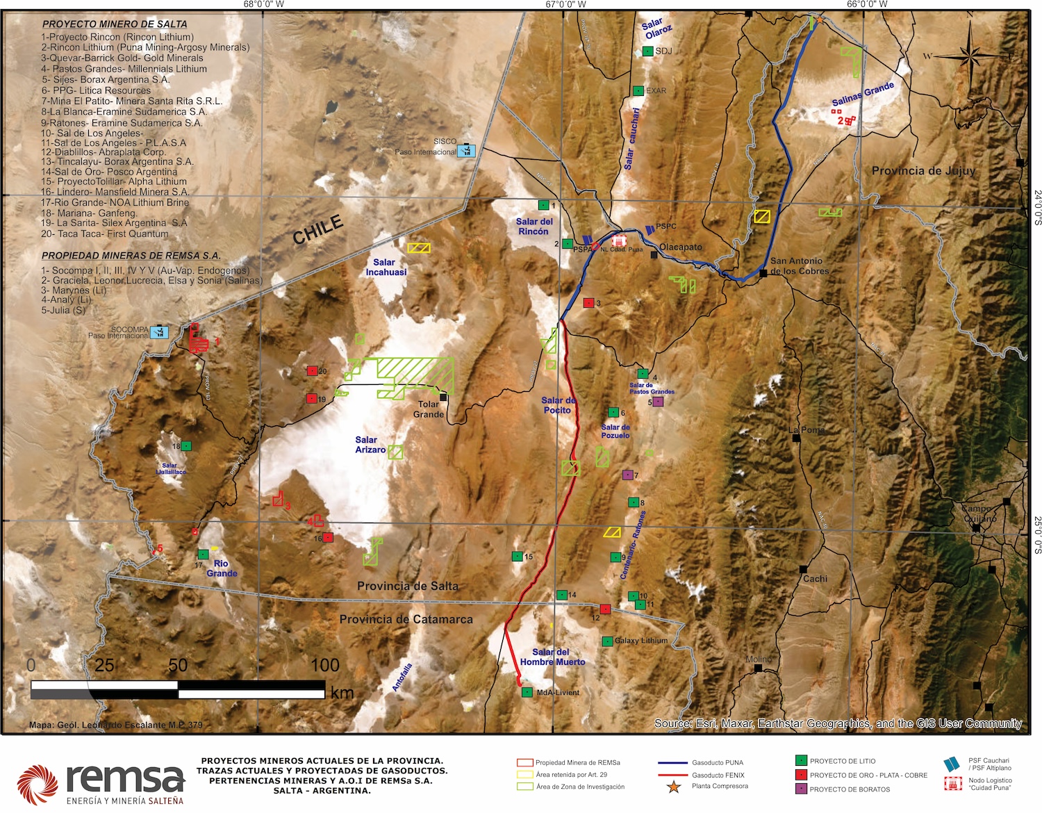 | Expte. | Nombre | Lugar | Mineral | 22762 | Remsa X | Salar de Arizaro | Litio |